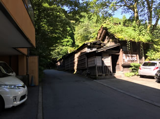 左写真は露天の女風呂。中は屋内の男風呂。川沿いのいい旅館だった。でも食事はかなりの年配の方がやられていて少し不自由な場面もあった。翌朝は右写真の川を上って5分も歩くと、