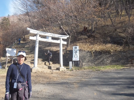 連休七日目、痛風発症後13日目は、5時前に起き、トイレ、朝食と6時からの登山に備える。左足の痛みはおもったほどでもなく、何とかゆっくり行けば登頂できそうだ。あさ、登山開始。下の左写真が神社の登山口。今朝は開山日だったので、10時に式典があり、右の側道を通って登山開始した。まずは急こう配の石と木の階段だ。相当息を切らして登り切ったところがやっと1合目。これにはショックが大きい。それからは、クマザサと白樺の土の道をひたすら歩いていく。このころまではまだ精神的にも気分がいいんだが・・・。