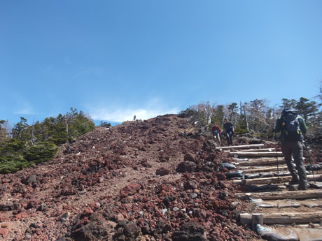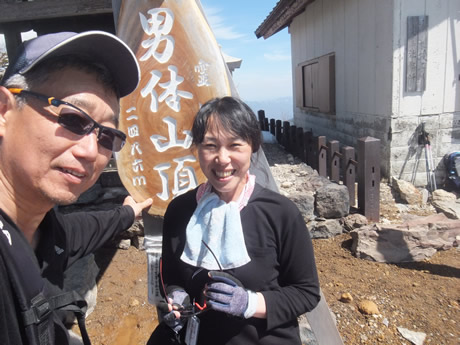 9合目以降は山頂の感じが伝わってくるので疲れが吹き飛ぶ。天気が良く視界は良好。北の月山、西の白馬、南の富士山(今日は見えなかった)、西の筑波山まで見通すことができる。朝日山や八海山など酒で有名な山も綺麗に見えるし、近くの武尊や昨年上った白根なども綺麗に雪をかぶった状態で見える。