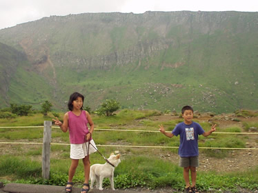 沙也加が小学校の泊りの遠足で志賀高原に行くことになった。残された俺たちは暇だったのでやはり志賀高原に行きさやかに挨拶してからその近所でキャンプし、高原を楽しもうということになった。まずは代表的なおかま。ここは硫黄臭ぷんぷんだが、犬の元シロにはきつかっただろうな。さすがに嗅覚が鋭い分、何か不安を感じでいただろうね。下右写真の蒸気の噴出口ではたいへんだったろう。このときはそんなことちっとも考えられなかったけど。