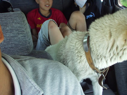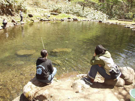 左写真は釣り堀、なかなか釣れなかったが、やっぱりこうゆうのはさやかが最初に成功する。この後に花敷温泉に行った。