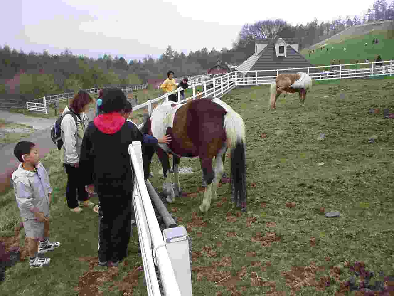 清里の近くにある牧場公園。広大な敷地を巡回し、馬や羊と遊べます。