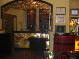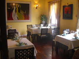 場所は、張りぼての牛で有名なステーキ屋さんの隣、センスのあるフレンチビラです。 店内もシックでいい。BGMもいいんだよねー。ディナー時は、生演奏が入るとのこと。 |