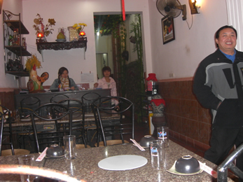 13日(火) 今日も比較的旨く行った一日だった。定時で帰り、どこか鍋料理でもとのリクエストに日本人i,h,m氏とVingonへ。今日もベトナム風カニみそ鍋にした。ここは、日本人経営の店だけあって店内もきれいだし、店員も日本語がかなりできる。安心感もあってか、話が弾み、6時半から8時過ぎまで食事した。やっぱり、この辺が日本人と駐在員との共有できる落とし所なんだね。やっぱり、ベトナム人が多く、うるさくてきたない店は日本人には難しいのかもしれないな。いい勉強になった。なお、鍋の具材で、魚のすり身と湯葉は旨かった。 |