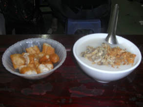写真中央が、この店の入り口。お粥には、揚げパン(甘くない)が付いていて、これをお粥につけながら食べる。違和感なし。もう少し、出汁がきいてると、もっといいかな。