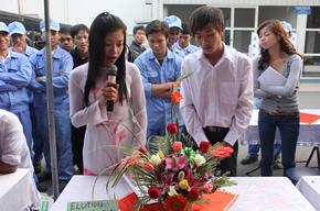 24日(土) 昨日の午後は組合のパーティー。来賓あいさつから始まり、選挙、カラオケ大会、各工程対抗生け花コンテスト、職場対抗サッカー決勝戦、安全知識コンテスト、パーティー、ディスコ大会と盛りだくさんで、楽しかった。もうみんなは年末忘年会気分で、仕事にならない。ベトナムの正月は、1月の後半なんだけど。。。昼会でさえ中止させられた。ホントにベトナム人はパーティー好きだねー。でも、普段作業服きている従業員も、化粧してアオザイ着ると、クラブのホステス並みの美しさ。これにはびっくりだ。やっぱり、スタイルいいし、化粧もやるときゃしっかりやるからね。写真貰ったら月曜日にでも貼っとくよ。今日はイブだってーのに、これから安食堂で一人で食べなきゃ。これはさびしいねー。明日は、ベトナム人の知り合いの息子さんがハノイでテニスしたいっていうんで、日本人クラブでお相手、そこそこうまいって話だから、少し楽しみだ。