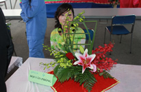 衣装着て、化粧するとこんなに綺麗になるんだな。 生け花コンテスト。各職場から出展、テーマは家族。