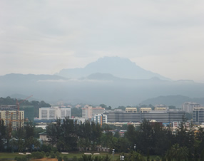 二月休暇で行ったボルネオ島北部のリゾートコタキナバル。その東50kmくらいに位置するキナバル山が写真。この日は良く晴れて山頂まで良くみれた。登山にも挑戦したかったけど、二日必要とのことなので諦めた。いまでも山頂から白煙が噴出しているようだ。まあ、ボルネオ島の富士山ってところかな。