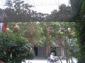 そして、更に進んで前方の景色を見るとコリャよくニンビンで見る景色じゃないか。地図で確認すると、このあたりからニンビンにかけて奇石や変わった形の岩山が多く、石灰地層が続いていた。どうりでセメント会社が多いわけだ。観光地じゃないけど、こんな見ものもあった。下写真は女性のお寺らしい。解説も説明もないところだった。このあたりで雨は本降りとなった。こうゆう時に限って自転車のチェーンは外れる。びしょ濡れ状態で元に戻す。