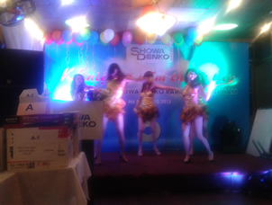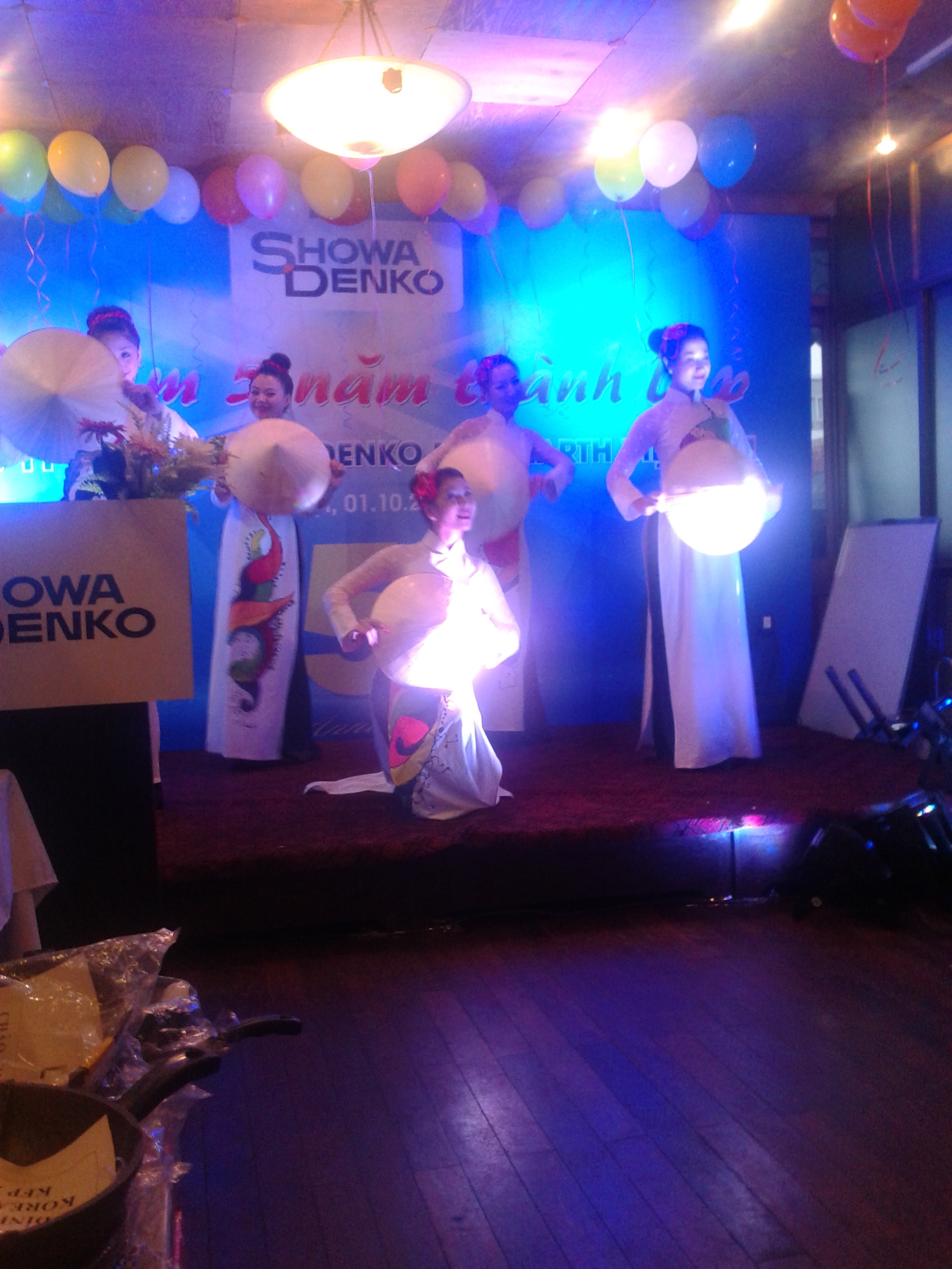 10月1日は、会社の創立記念日でお休み。なぜか、街のとおりにも国旗が掲揚されている。なにかの祝日とダブってるのかな。これは記念パーティーを船上でやったときのショー。こじんまりとしたショーもなかなかいいもんだ。