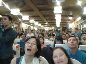 今日は会社の創立記念日でお休み。でもやっぱり出勤しなきゃ。昨日は記念パーティーをホータイ湖の船を1隻借り切ってやってきた。やっぱりベトナム人は、パーティー好きだ。左写真セクシーダンスショー。これはなかなか良かった。右写真は、ショーを見ている従業員。この楽しそうな顔がいい。この後もカラオケでお馬鹿な夕方を過ごすことができた。