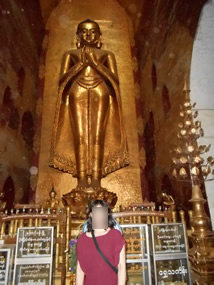 午後は、まずバガンで一番美しいといわれるアーナンダ寺院。この形と女神像の美しさは格別だ。でも、どうしてみんあ金ぴかなんだろね。こういった大きな寺院には、4方向に1体または2体ずつの仏像が置かれている。しかし、ほとんどの寺院やパゴダは、上に登れないようになっている。重要な研究材料が眠っているためか一般の観光客は、入れない。本当に価値のあるのは、あの仏塔の先端なんだけどなー。