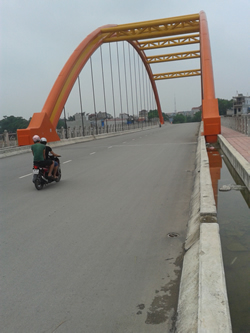 肘痛ひどいため、朝ランニング後、マイチャウに行こうと7時30分に家を出たが、雨が降っていた。やはり、中国人排斥運動の中、一人で遠出・宿泊しかも雨。悪条件がかさなったので、家に戻った。今日は会社に行く予定はないので、何もすることがない。しかたなく、街の北側l(工場方面)に自転車で小旅行に行ってきた。下左写真が待ちの北側にある新橋。右写真は、橋をわたった風景だが、しばらく見ないうちにはるか先まで舗装されていた。見晴らしもよくなっている。なぜなんだろう。