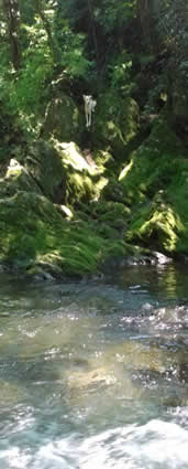 左写真は、エビ山の頂上。これ晴れてる午前だったら、回りの山々はくっきり見えてるんだローな。富士山も見えるようだ。右写真は、帰りの湖畔コース。このあと、スコールにやられ大変な目にあった。冷えた体は、沢渡温泉の公営風呂で暖めたが、短パンの代えは持っていなかったため、下半身湿った状態で夕飯を食う羽目になった。