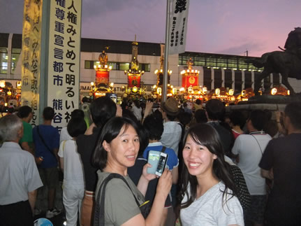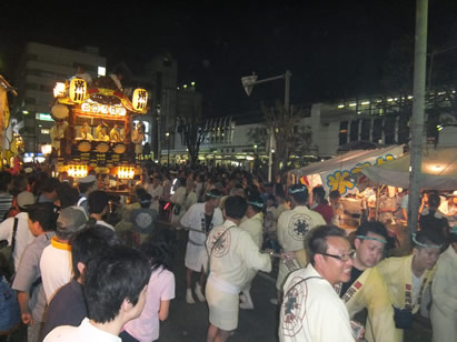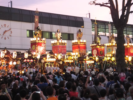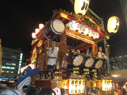 3連休の最終日。朝8時半から吉見にてハワイ旅行中のゆきのを除いての家族テニス。さて、今日のシングルは基との1セットマッチ。ほとんど練習していない状態なので、楽勝かと思ったが、開き直っていいテニスをしてきた。しかも、今日は熱中症が続出するような厚い夏の日差しだ。2-1から2-3に逆転されたときからあきらめの境地に入った。そして、2-5の時、撮られればマッチポイントを握られる場面で、ライン際にボールは落ちた。セルフジャッジシステムなので、迷いながらもアウトのコール。これが、聞いたらしい。それまでの積極的な姿勢が見られなくなった。このチャンスを俺は逃さない。じりじり1ゲームずつ挽回し、遂に6-5にて逆転勝利。やっぱり、若いもんは精神的に弱い。これが、現実の社会だ。あまりに疲れたので、昼寝を家族でし、夕方から内輪祭りに行って見た。初日なので、盛り上がっていないかと思ったが、各町の山車は、駅前に集合し、太鼓の叩き合いが始まった。そして、その後、一台一台と地元に帰っていく。町はそれほどの人ではないが、祭りの始めのため、ゆったり感がでている。これが、祭りだ。凄くいい。祭りは明日、明後日と続く。