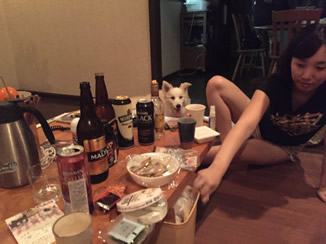 今日は先週に引き続き鈴木さんちのサトちゃんを招き、奥さん、基とダブルスに挑戦。サトちゃんと基を組ませて対戦したが、楽勝と思いきや、6−3であっさりとやられてしまった。サトちゃんもうちの家族とやるのに慣れてきたのと、俺の調子が悪かったからな。そして後半は基とのシングルス。雨あがりの暑いかでの対戦となったせいか、これも大苦戦。最近の暑いときは後半に追いつかれる展開が多くなってきた。今回も5−2から5−5だ。そして、6ゲーム先取にし、最終ゲームをやっとの思いで撮った。今年は、体力的にきついときはあっさりと勝てなくなってきた。まあ、来週もサトちゃん呼んでやりたいね。昨日香港マカオに遊びに行ったさやかと有希乃はなかなか楽しそうだ。