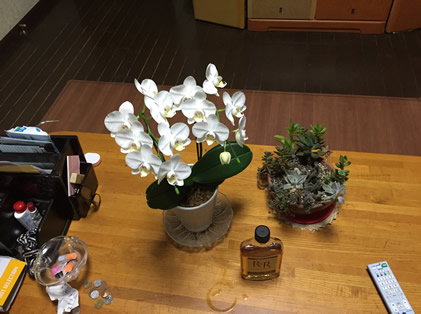 今日は、何度誕生日だ。ついに50台後半56歳だ。でも、いつもの週末だ。昨日は川越に見舞い。最近は相当体調がよく、ボケも進行してきた影響で、隊員の手続きをしてくれというようになってきた。誰かの励ましの一言がこうゆう結果になるとは。。。午後はスマッシュテニス。雨雲の様子でいつ中止になるかもわからない状況だったが、何とか一時間は持った。その後は、家で基と宴会だ。今日がシングルの試合だったし、もとも体調悪い状態だったんで、中途半端な家のみになった。しかし、基が買ってきたカナディアンウィスキーはひどい味だった。今日は8時集合で羽生でシングル大会だ。ここは当日の朝にくじでドローを決める。初戦はなんと先週に引き続き埼大の体育会。粗いプレーもあるし、メンタルも弱い。これはまた行けると思ったが、シーソーで競り負けて一回戦負け。これが、午前9:30なので、庭の手入れ、酒飲み、もとと昼飯食って、まだ時間あまる。やっぱり一回戦敗退はヤダね〜。左写真は昨日衝動買いした胡蝶蘭。美しすぎて家には似合わない。右写真はは、今日の畑の様子。久々に晴れたので、サニーレタス、レタス、白菜の苗を試しに植えてみた。