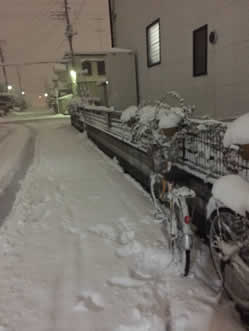 東京の中心部ここ虎ノ門でも午後から大雪になった。帰りの地下鉄に行く道は雪が積もり滑って危ないほど。jrは雪の影響で少しダイヤが乱れていた。行田では、積雪10pくらいかな。まだまだ強く降っていた。帰りの自転車だが、札幌では、雪の上も、氷の上も自転車は安全にすいすいと走っていた思い出がある。でも30年以上も昔の話だ。今日やってみた。思ってた通り、轍も何も関係なくすいすい走ることができた。何かうれしい。若いときと変わってないことを体験したときは。