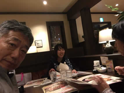 金曜日は仕事を終え、少し早めに帰ったが、何かものたりなくなり、熊谷で待ち合わせ、昔よく言った広東風居酒屋に二人でいってみた。さすがに寒いせいか、店は込んではいなかった。でもやはり、年々ネタの量がすくなくなってきているようだ。でもやっぱり枡酒はうまい。いい雰囲気でのんでしまった。今日の朝はアリーナで一時間奥さんとテニス。なんだやっぱり少しづつ体調戻ってきたじゃないか。捻挫も痛くはない。年末年始はやっぱり体調が悪くテニスも不調だっただけなのかもね。病院帰りはまたさやかのところ。これで三週連続だ。俺たちもひまだねー。そのあと、近くの喫茶店にて夕食。腹減ってなかったので、久々に食べてみたパンケーキセットだが、ここのは旨い。また今度ここに来よう。