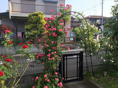 二年前に植えたツル性のバラで紅白のバラケートを作ってみた。バラは独立性が高いので、頂上がこの先どうなっていくのかが心配だが、ほぼ完成してきた。でも、いつも気になっていた北上尾駅付近の家にはゲートが3,4もあり、それぞれ立派なバラがしっかりと咲いていて、魅力的な香をはなっていた。やっぱりすごい人がいるもんだ。