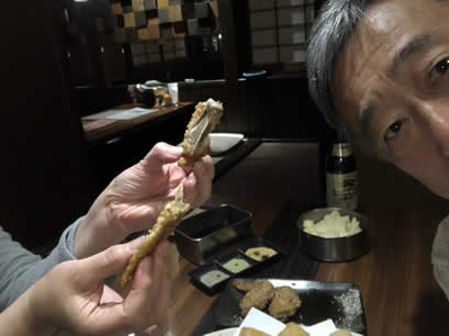 この露天風呂と番屋風呂は予約制。夕食をサーブしてくれたのは、なんとphu’ly出身の女の子、夕食はこれが前菜、アワビ、イセエビ、金目の煮つけ、デザートと進む。旅館でこれだけ腹いっぱいになるのは始めただが、あとが苦しくなかった。