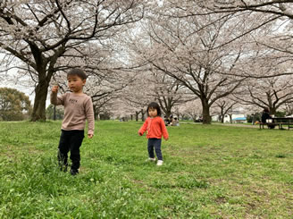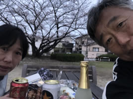 今日は、朝吹上の元荒川沿いに花見にでかけた。朝日を浴びて昨日一気に咲いた桜が八部咲きの綺麗な景色を見せてくれた。子供たちが小さいころ休日の朝よくここに来たんだよねぇー。今も白鳥は行田周の伏流水の川との合流点に住んでいて近所のおばさんからlパンをもらって生活していた。午後はスマッシュ。新入のt橋夫婦はかなりうまいので結局俺は気を抜く暇がない。でも、3時間は耐えれるようになってきた。テニス後は18時から、新宿公園で奥さんと二人で花見宴会。日本酒はなんと王冠式のふただったので、ビールと少しのつまみを食べただけで帰って家で飲むはめになった。なんで日本酒がスパークリングなんだよ、八海山!孫たちも花見してる。