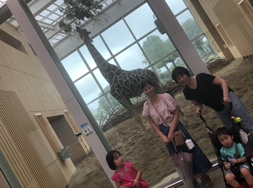 咳が出て体調の悪い中、今週も5日勤務。もう二週間も続く席だけどまだ回復はゆっくりだ。朝はゆっくり過ごしていると、ゆきの親子が10時過ぎにやってきた。14時からスマッシュなんだから特に遠出する必要ないのに、東松山の動物園に行くことに。雨が降っていてこりゃまた風邪の治りも悪くなるなーと思いつつ、定番のコースへ。ここはやはり敷地も広くデザインがいいので半日は過ごせる動物園だ。最後は子供のお城でクーラーがあり、少し体力面で助かった。13時までいて、うどんを食べて家に帰るともう13時半だ。結局1時間遅れてスマッシュへ。今日も天気の割には蒸し暑くかなり苦しいテニスとなった。なんか体が素早く動かないんだよなー。テニスを終えて帰って孫たちを風呂に入れればあとは宴会だ。いつも通り早い時間から酔いつぶれてソファーで寝て、22時にベットに戻った。今日も良い一日だった。