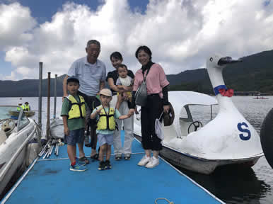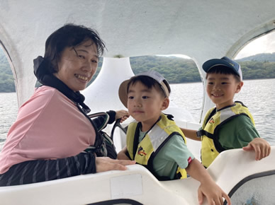 今日は、敬老の日ってことなのか、さやか、ゆきの家族が集まるはずが、はるきが発熱したってことで、さやか家族だけ来ることになった。今日も引き続き暑い日が続くので、赤城の山頂にいくことにした。さすがに、ふもとから山頂まで高度が上がるごとに33℃から25℃まで下って行った。まずは大沼にてスワンボート。その後食事をして大沼神社参拝。そして、帰宅するが、まだ時間が早いこともあり、深谷のハレニワの湯に寄ってきた。こじんまりとした温泉センターだが、幼児の遊び場が充実しているので、若い家族連れやカップルでにぎわっていた。待ったりするのにちょうどよい場所らしい。こちらは3人の幼児がいるので、とてもそんな気分ではないが。そうたはボルタリング得意そうだった。帰宅時は20時を回っていたので、ヤオコーで食材を買い込み素早く食事して、さやかたちは20時半過ぎに帰って行った。10月以降は孫のおもりが加わり、忙しい週末になりそうだ。