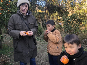 昨夜は職場の中華会8人でのメンバーと茅場町の海老仙にて、4000円で飲み放題の火鍋コースだ。火鍋と聞いて嫌な予感はしたんだが、鍋は赤白で分かれていて、両方ともにいい味だった。まあ味が濃いのはこの際許せる。ここは次も使おう。飲み物もまずまずだし、店員の対応もいいし、食べ物もうまい。なんといっても茅場町ってのは、門仲と二本橋に挟まれ、その適度な値段と若干の下町感そして、中クラスのビジネス街感がいい。この前もベトナム調理食べに来たがこれをその時も感じた。のどの方は相変わらずで、咳は続くが、熱はです、かと言って体調は全開ではなく、中途半端な状態が続く。今日はゆっくり過ごそう。明日はテニスオフのシングルスだ。行けるかな?さて、何とか体調を維持している昼頃、病み上がりのそうたと元気なしんたを連れ奥さん主催で風布のみかん狩りに行くことになった。事前に連絡するとほとんどのみかん農家はすでに終了しているとのこと。でも、これであきらめないのがいつもの奥さんだ。市役所まで電話すると、まずほとんど完了しているが、もし旗のたったミカン農家があれば、やっているしるしとのこと。俺はやめようといったが奥さんは行くと言い張る。結局風布までのドライブとあきらめて出発した。現地に着くとやっぱり風布の農家はすべて完了している。でも、その先の細い道にある部落のミカン農家の案内の看板がでていた。少し行くと車がぎりぎりの幅になり、俺はもう戻るといい。奥さんには、お前の感も鈍ってきたなと言った。なかなかUターンする場所もないのでもう少し進んでいくと、山中にミカン狩りの旗が経っていた。これはすごい。さすが遊びのプロ。普通の人じゃまずここまで行かないだろう。ありがたいミカン農家に立ち寄り、ミカン狩りを楽しんだ。帰りは熊高話でオーナーと話が盛り上がった。