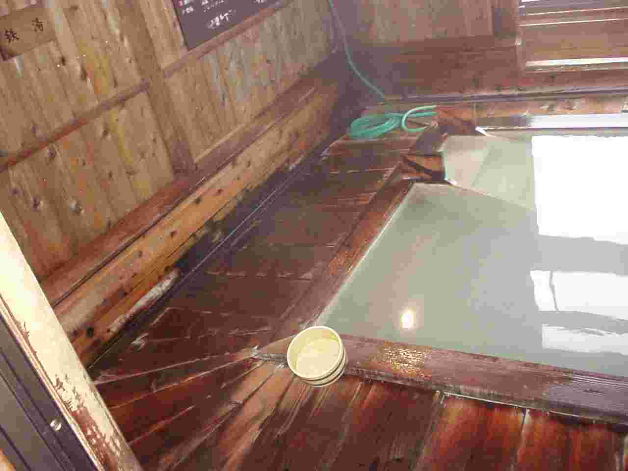 浴槽 木といおう泉が混じる独特の匂いと、ぬるっとした感じの浴槽です。