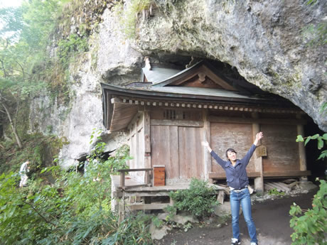 こんな岩の面を利用していくつもお堂が建てられている。ちなみに、最後のお堂は僧が念術により平地からこの岩の穴に一気に放り込んだと記録されており、投入堂と名前がついている。しかし、つまずきや滑りやすい危険な修行の道だった。おかげで両膝を打ちつけ、腰を打ち、旅館に戻った時には体はボロボロになっていた。