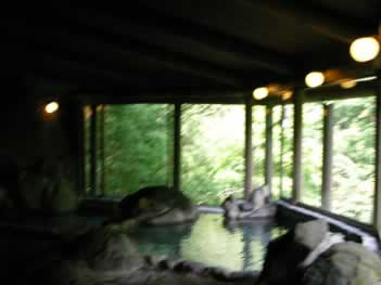旅館の正面には、こんな共同浴場がある。ここは前回来た時人が多くて入れなかったので、最高の気分。泉質も凄くいい。 |