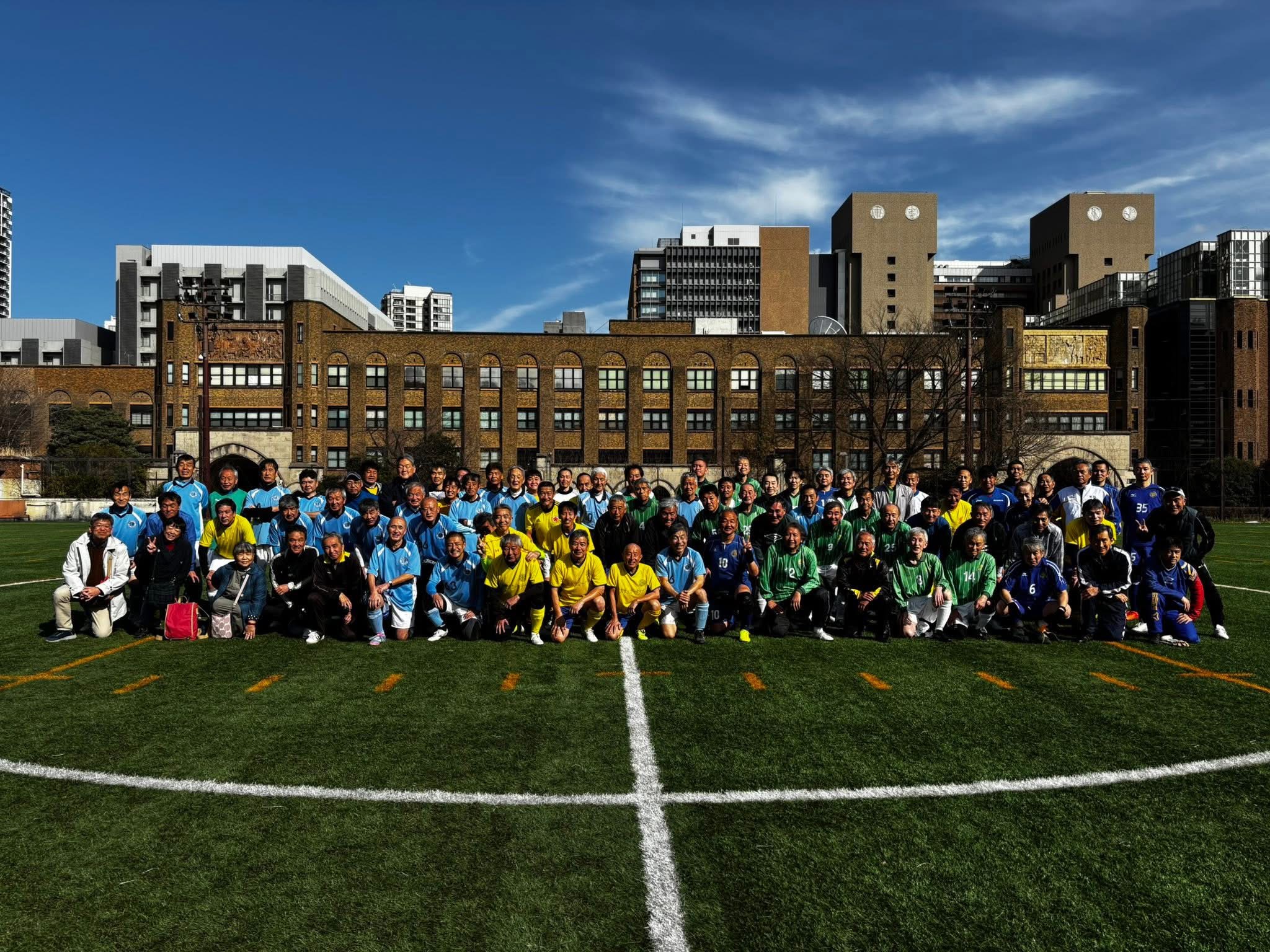 今日は、防大、東大、東北大との四つ巴戦だ。東大の本郷にある御殿下Gで14時半から17時までのリーグ戦。秋の大会は防大でやり、どの戦いも押し込まれたが、俺の1点で最下位は免れて3位だった。今回も、防大には押し込まれ1-3とやられたが、俺が出た東北大、東大戦ではなんとか押し込んだ展開が出来た。しかも、東大戦では、俺の左足のループボレーがキーパーの頭上を超えゴール。この時は8人とのハイタッチで喜んでもらった。まあ、七帝戦への良いステップになったかな。それにしても東大の構内の建屋の重厚さ、整備の行き届いた手入れは素晴らしい。医学部の新建屋、旧建屋、そして御殿下グランドの景観もいい。やっぱり、東大には大きな支援が行き届いてるねー。17時からは各大学合同の餃子宴会だった。20時近くまでやっていて、終わりそうになったので素早く帰ってきた。なんと、1時間以内で帰宅することができた。最後の写真は得点後のもの